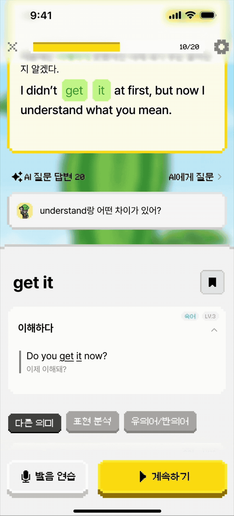 AI가 오답률을 확인하고 나의 실력에 맞는 표현을